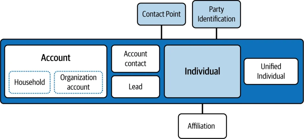While Party focuses on individuals, the Account Contact DMO emphasizes businesses and how they interact with their contacts. This is especially useful for B2B models where companies need to manage relationships with multiple stakeholders.